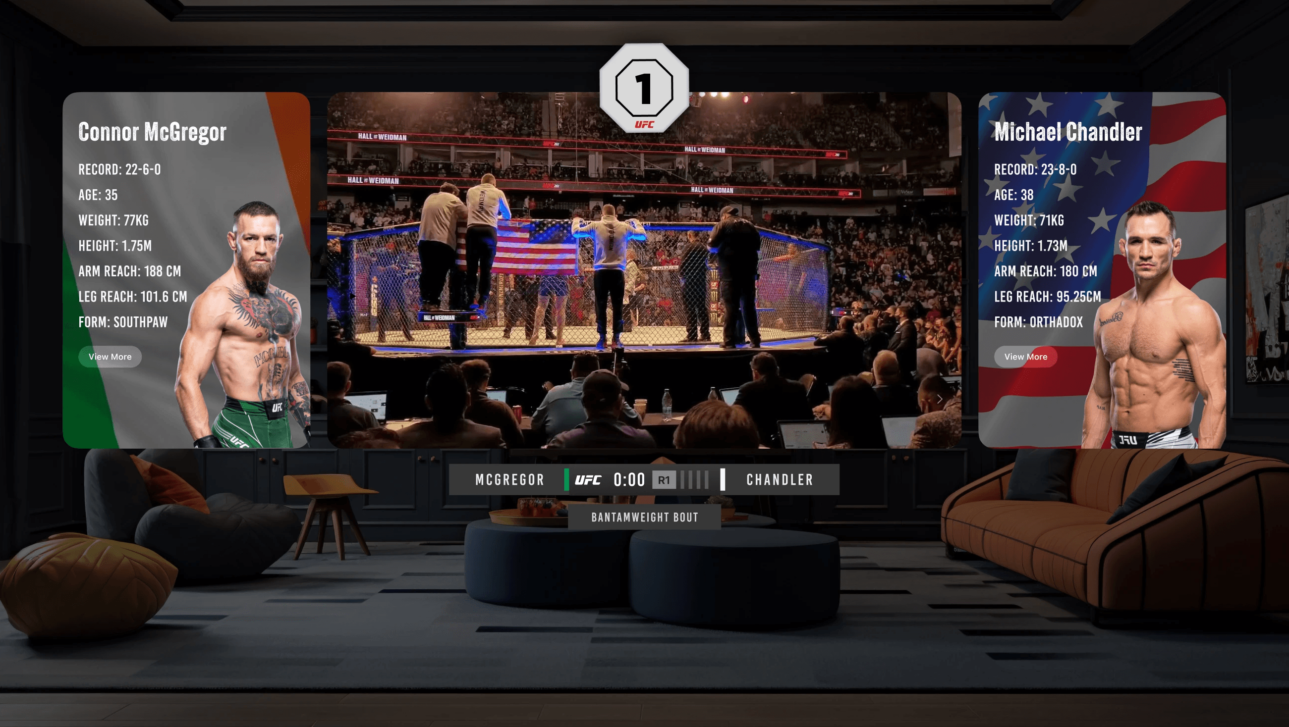 Seamless Broadcast Integration: Ensuring the VR experience flows smoothly with the live broadcast was essential. The concept included a pre-fight visual of fighters with detailed stats and an interface that mimics familiar video playback controls for user ease.